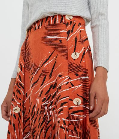Saia Midi Estampa Animal Print com Botões Frontais Laranja - Renner
