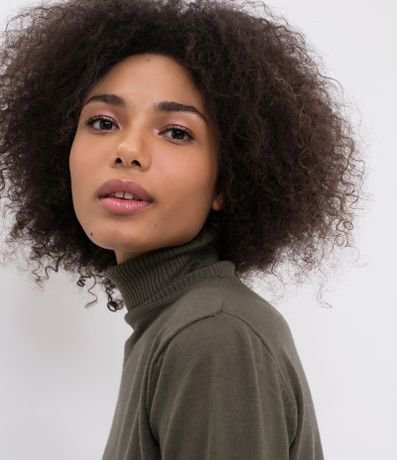 Blusa Básica em Tricô com Gola Alta Verde Escuro - Renner
