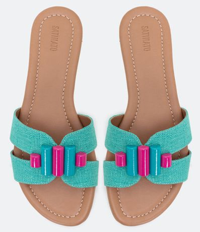 Rasteira Feminina Cabedal em H e Adorno Satinato Verde - Renner