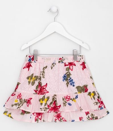 Saia Infantil com Babadinhos em Camadas Estampa Floral - Tam 5 a 14 anos Rosa - Renner | Produtos Exclusivos do Loja.Online