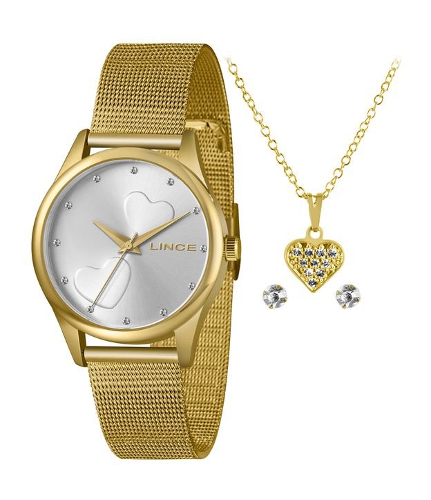Kit Relógio Feminino Lince Lrgj115l Ky71s1kx Analógico + Conjunto de Semijoia Dourado - Renner