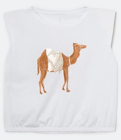 Blusa Regata Muscle Tee Estampa Camelo com Strass Branco - Renner