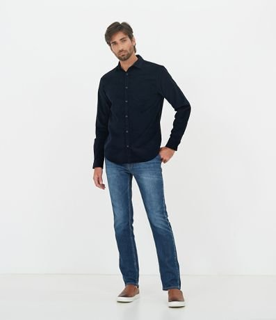 Camisa Comfort Lisa com Bolso em Veludo Azul - Renner