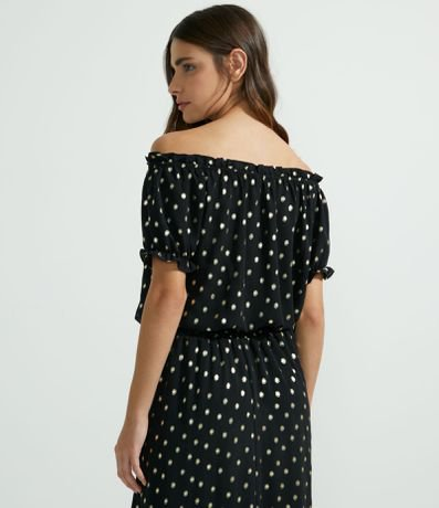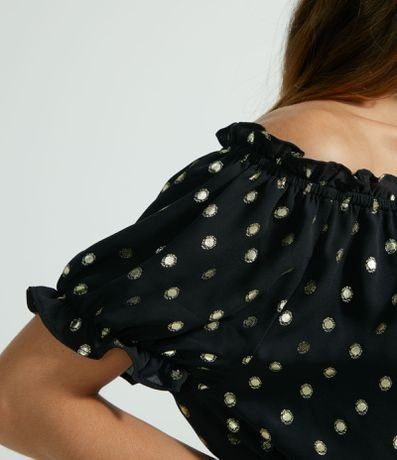 Blusa Ombro a Ombro com Poá Metalizado e Amarração Preto - Renner
