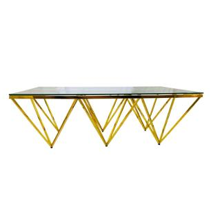Mesa de Centro em Metal Dourado com Tampo de Vidro - 40x120x80cm - Camicado | Produtos Exclusivos do Loja.Online