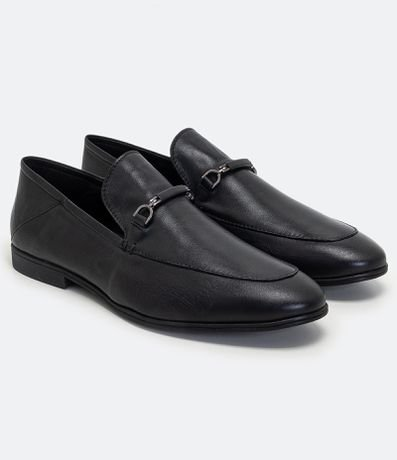 Sapato Casual Loafer em Couro com Traseira Flexível Preto - Renner