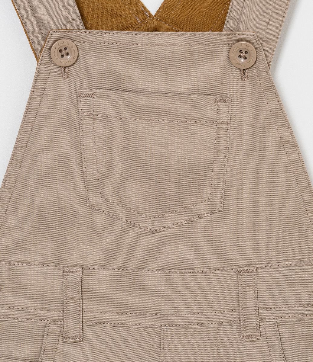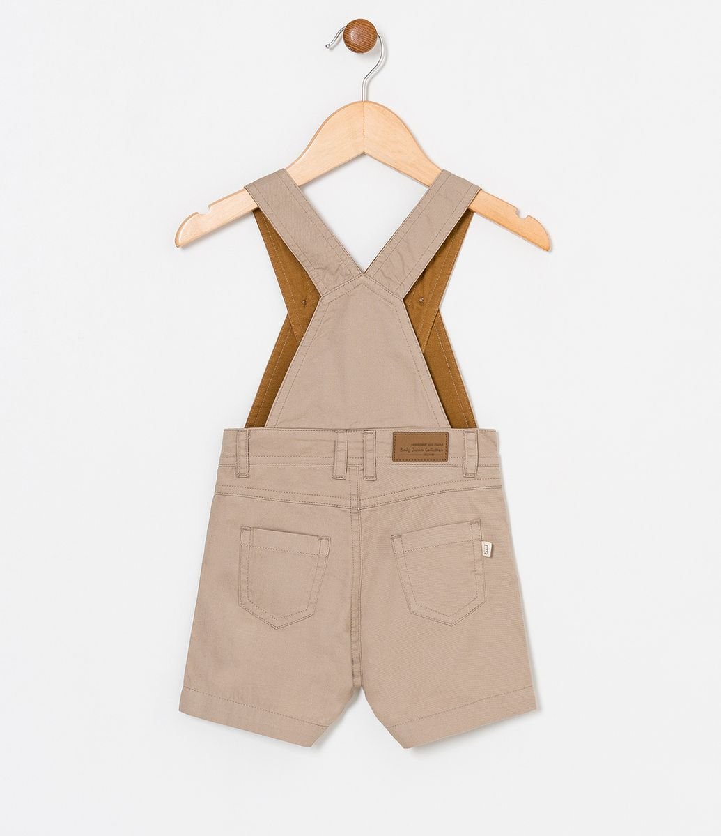 JARDINEIRA INFANTIL EM SARJA COM BOLSOS - TAM 0 A 18 MESES BEGE