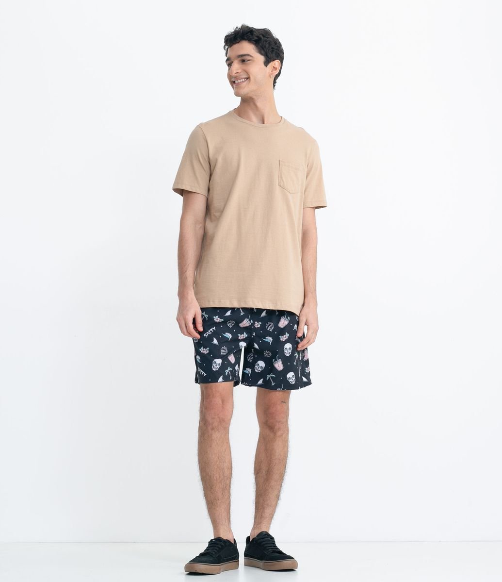BERMUDA ESTAMPADA COM CAVEIRAS PRETO