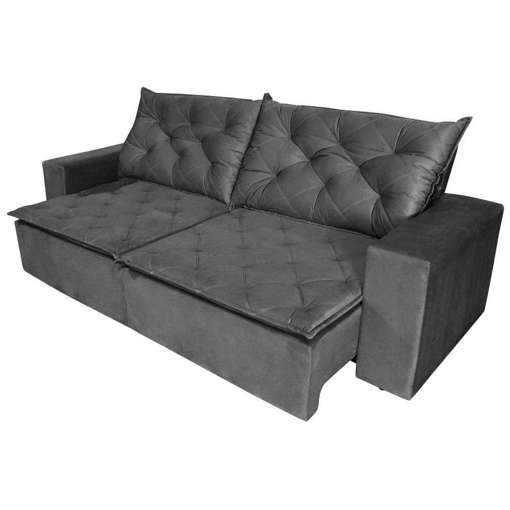 Sofá 3 Lugares Quality com Pillow Retrátil e Reclinável 2,10m Veludo Grafite