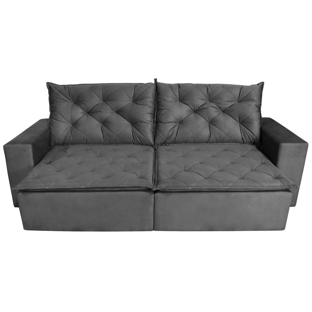 Sofá 3 Lugares Quality com Pillow Retrátil e Reclinável 2,10m Veludo Grafite | Produtos Exclusivos do Loja.Online