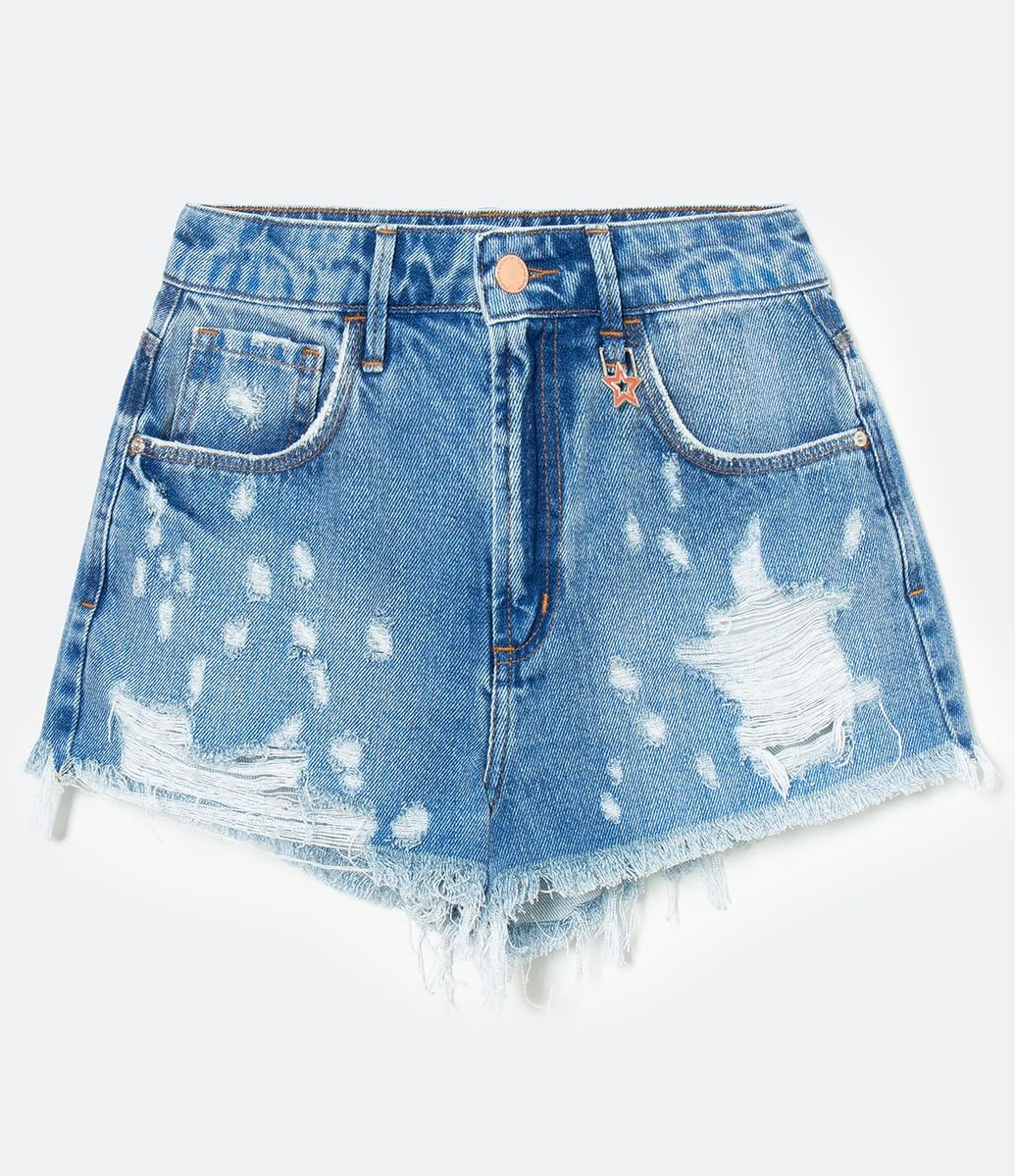SHORT CINTURA ALTA JEANS COM PUÍDOS AZUL