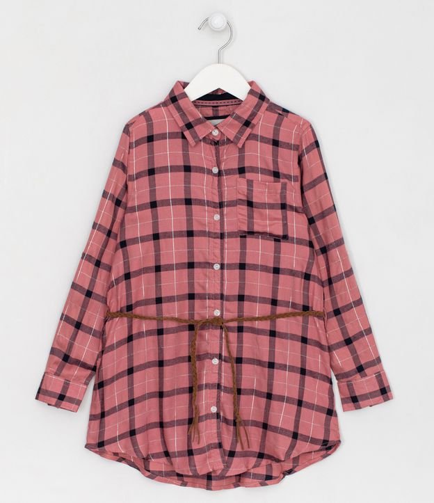 CAMISA INFANTIL ESTAMPA XADREZ COM CINTO - TAM 5 A 14 ANOS ROSA | Produtos Exclusivos do Loja.Online