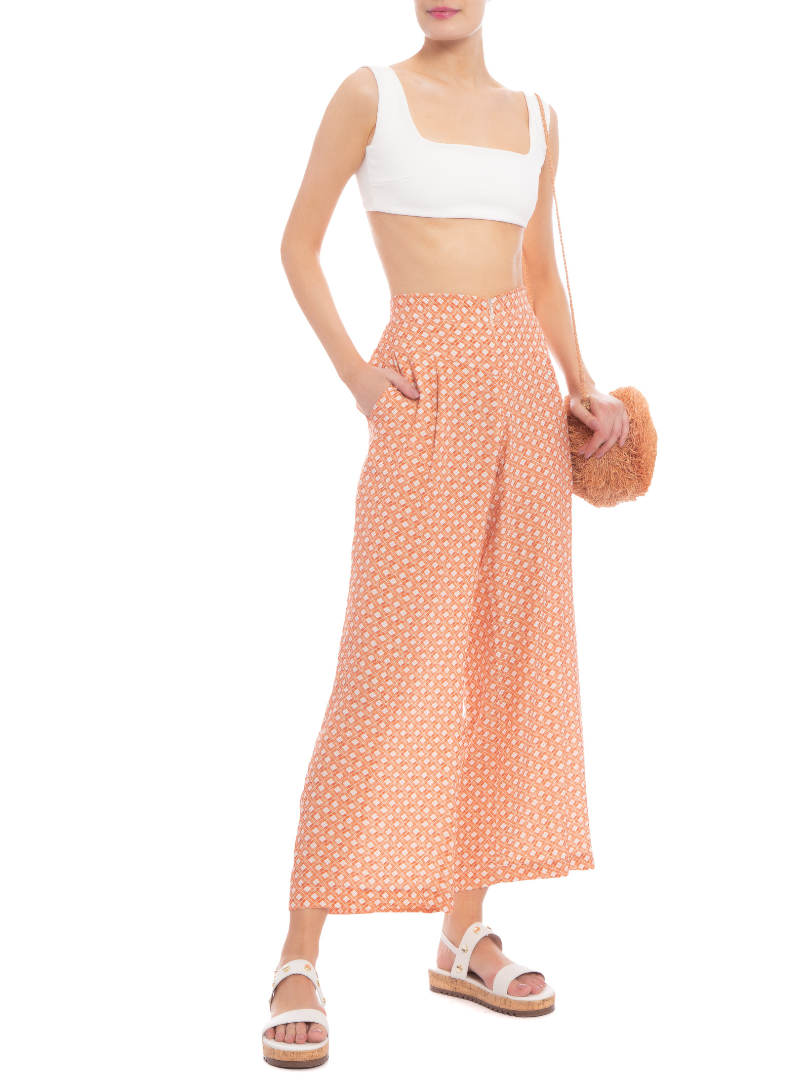 Calça Feminina Xadrez - Laranja
