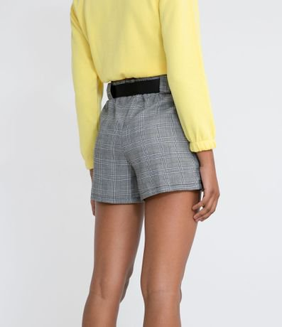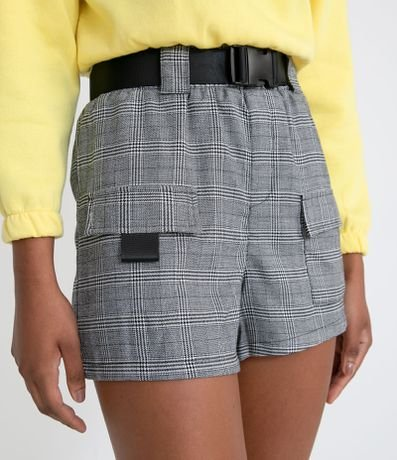Short Xadrez com Bolsos e Cinto com Fecho de Click Cinza - Renner