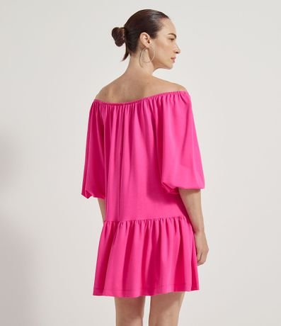 Vestido Manga 3/4 Bufante Recorte Maria na Barra Rosa - Renner