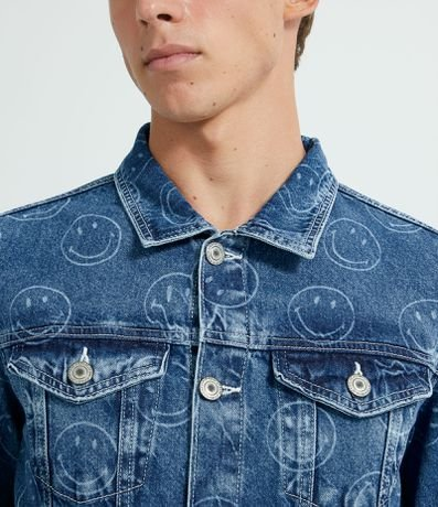 Jaqueta Jeans Estampado Smiles Azul - Renner