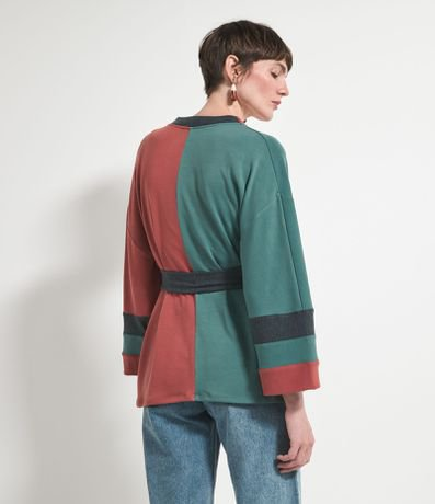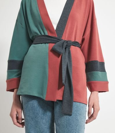 Kimono Manga Curta com Recortes Contrastantes Comfy Multicores - Renner