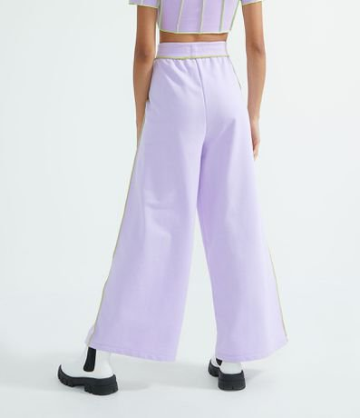Calça Pantalona em Moletinho com Costuras Contrastantes Roxo - Renner