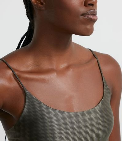 Top Esportivo com Bojo em Poliamida com Alça Fina Rolotê Texturizado Cinza - Renner