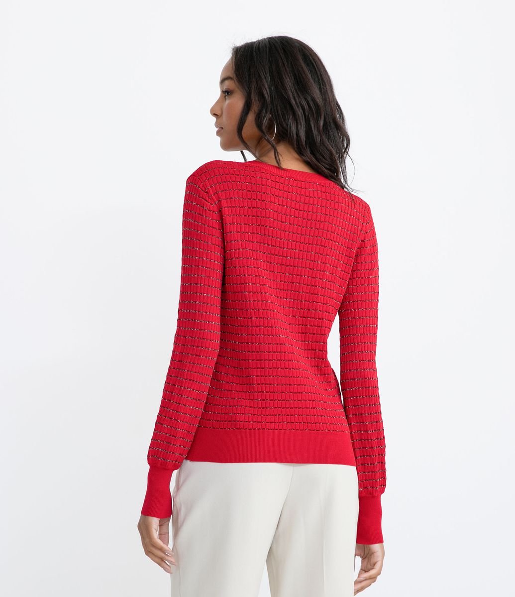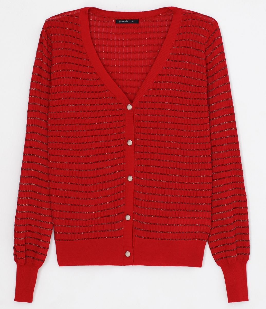 Cardigan Texturizado Em Tricô Com Fio Metalizado E Decote V Vermelho | Produtos Exclusivos do Loja.Online