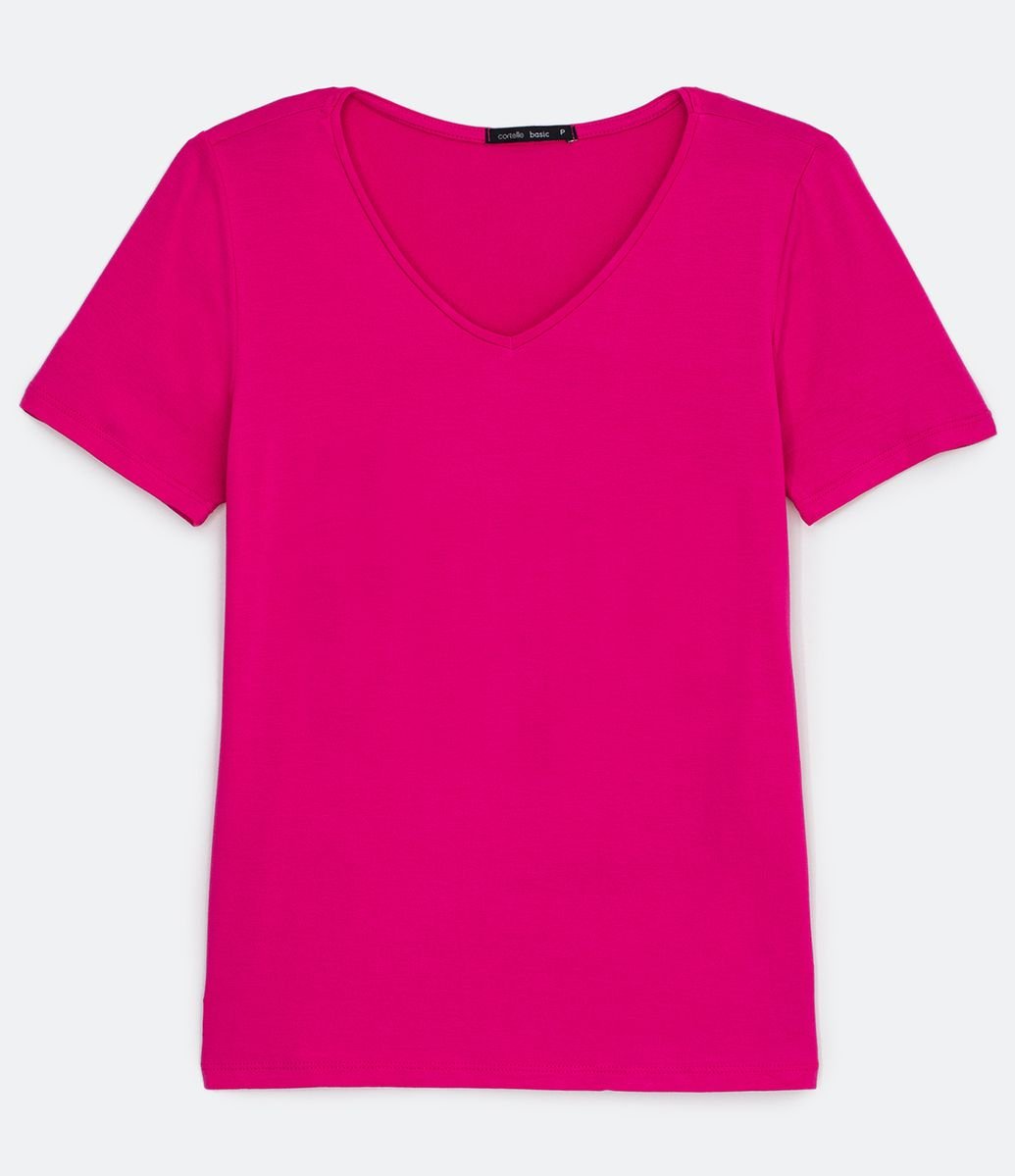 Blusa Básica Em Viscose Com Gola V E Manga Curta Rosa