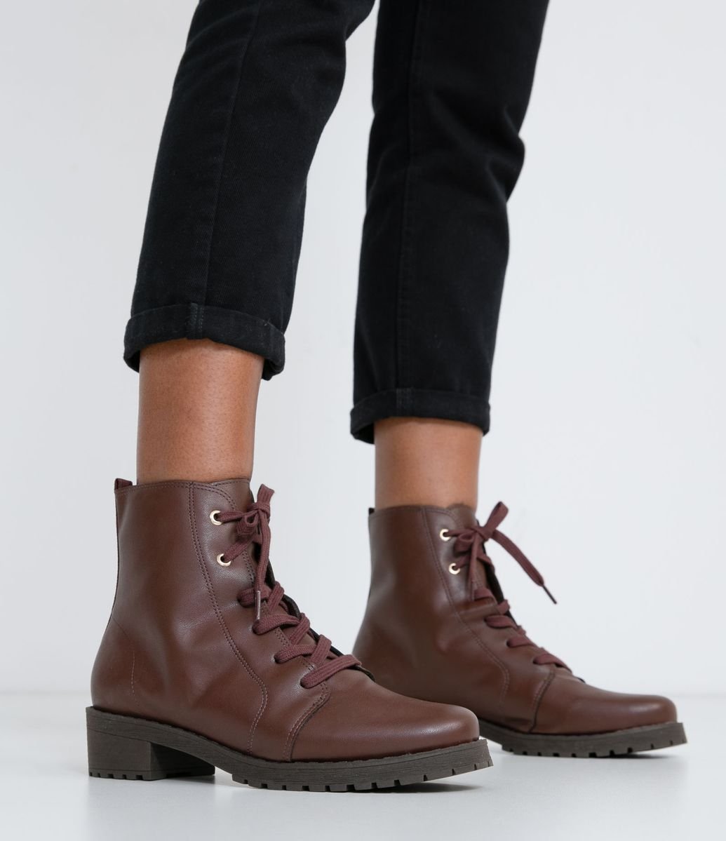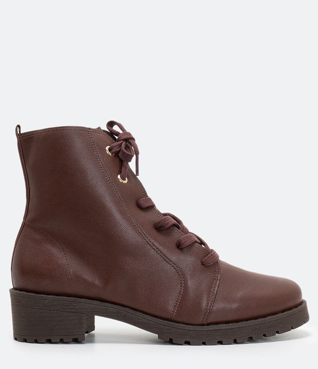 Bota Tratorada Cano Curto Satinato Marrom