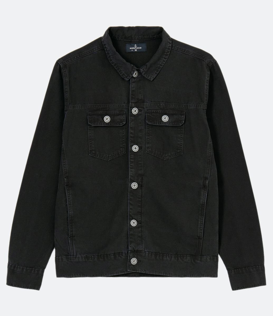 Jaqueta Trucker Em Sarja Cinza Escuro