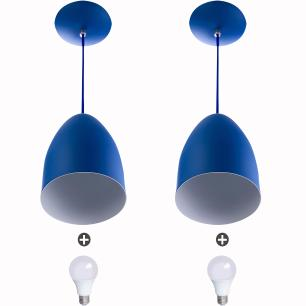 Kit 2 Lustre Pendente Cone De Alumínio 20x14cm Azul + Lampada - Camicado | Produtos Exclusivos do Loja.Online