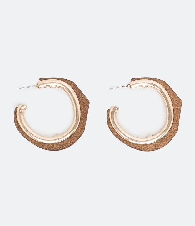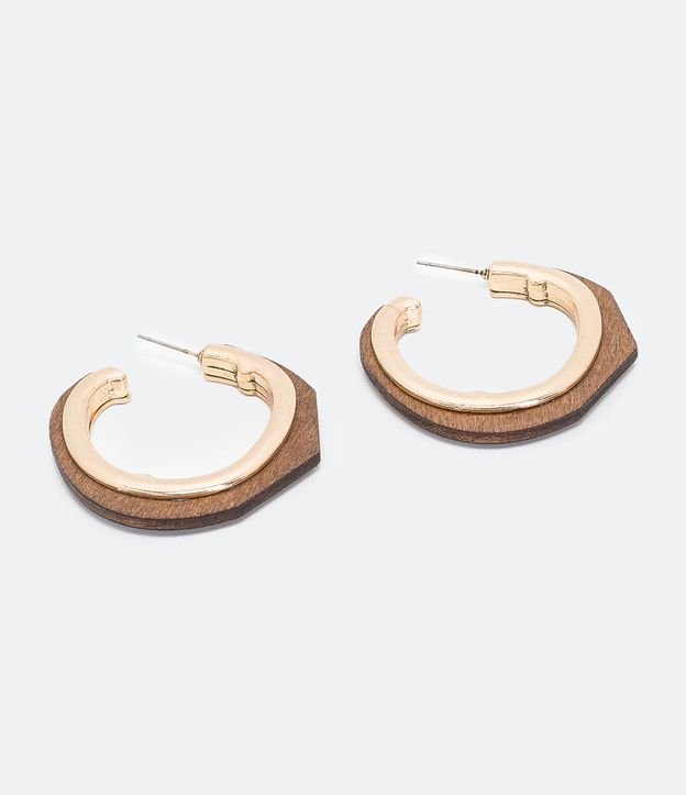 BRINCO DE ARGOLA COM FORMATO ORGÂNICO E ACABAMENTO EM MADEIRA MARROM