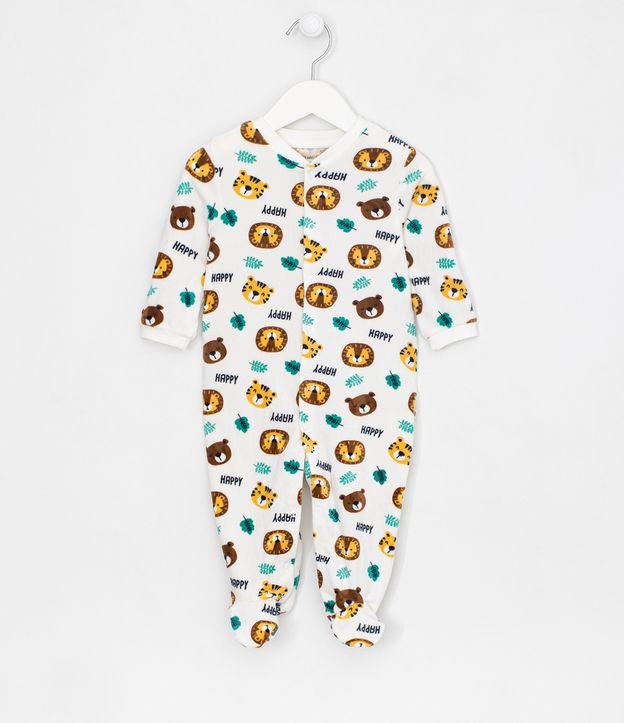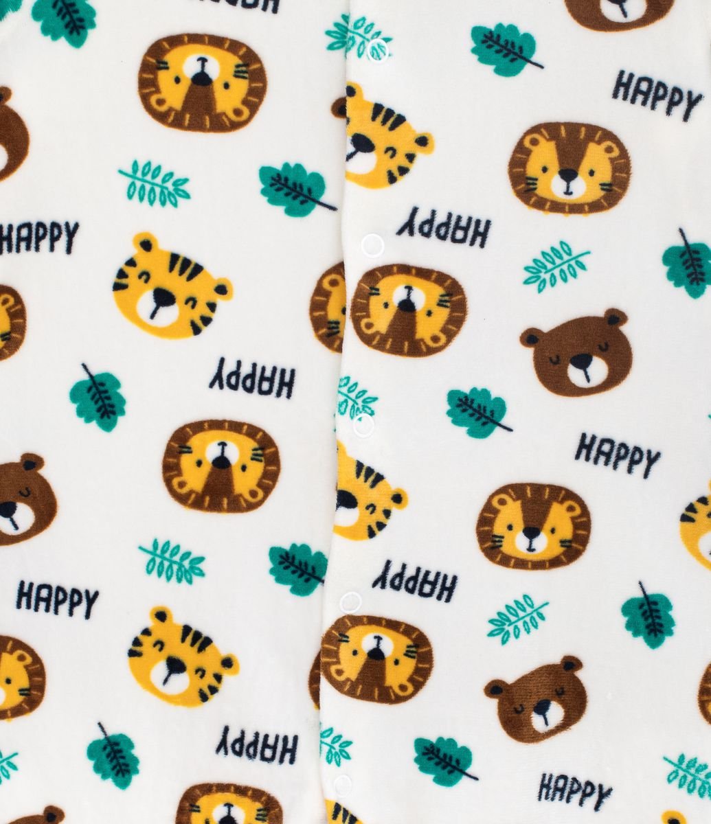 MACACÃO INFANTIL EM PLUSH ESTAMPA DE BICHINHOS - TAM RN A 18 MESES BRANCO