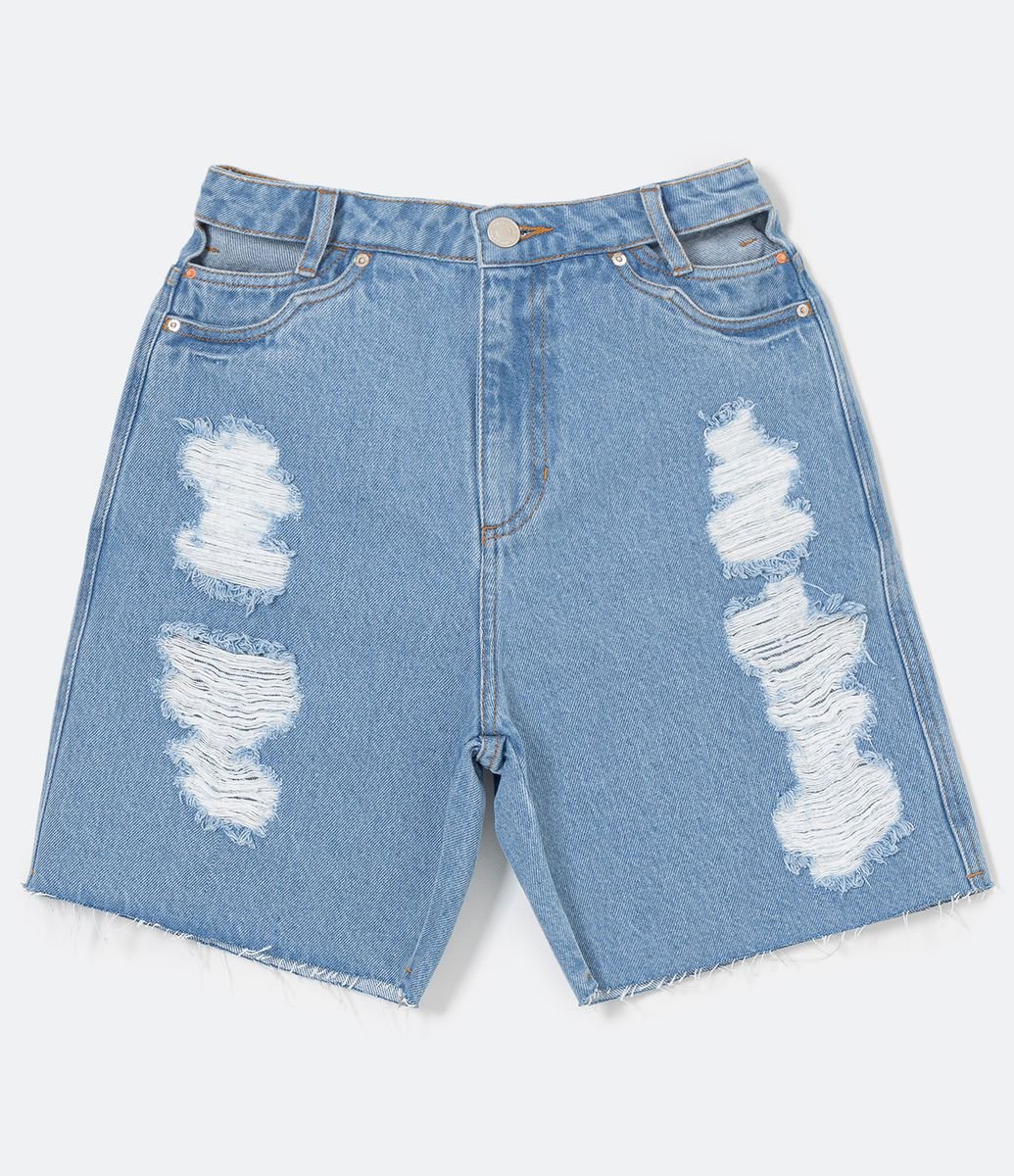 BERMUDA JEANS COM PUÍDOS E ESPELHO DO BOLSO VAZADO AZUL