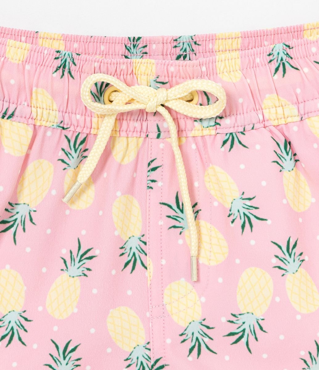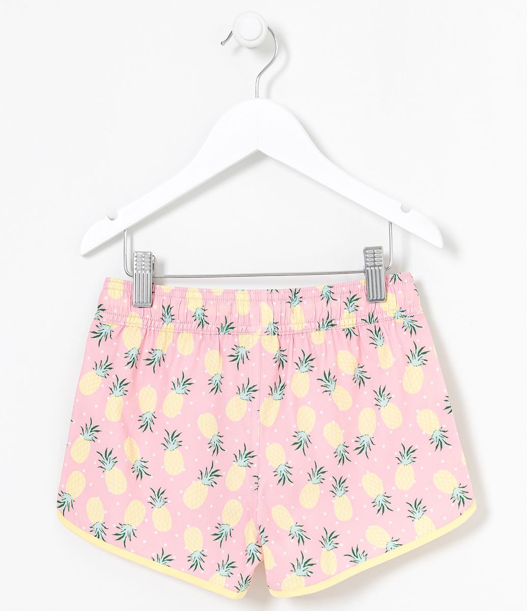 SHORT INFANTIL RUNNER EM MOLETINHO COM ESTAMPA DE COQUEIROS - TAM 5 A 14 ANOS ROSA