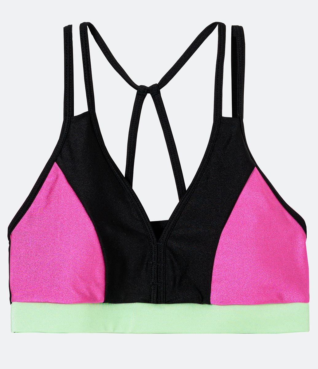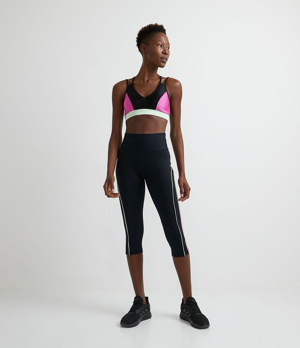 TOP ESPORTIVO EM POLIAMIDA COM BOJO E RECORTES CONTRASTANTES PRETO