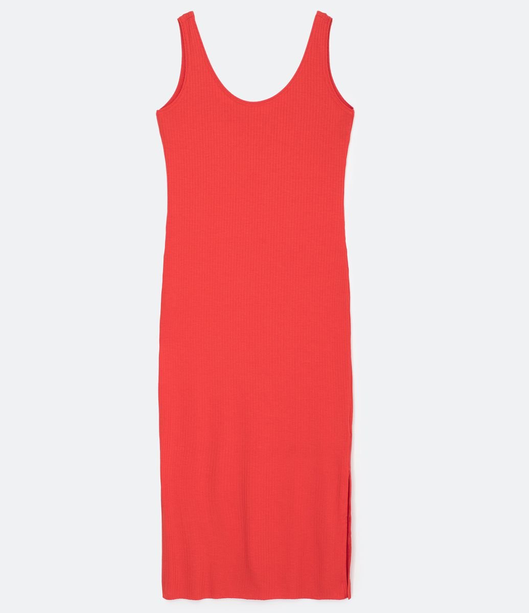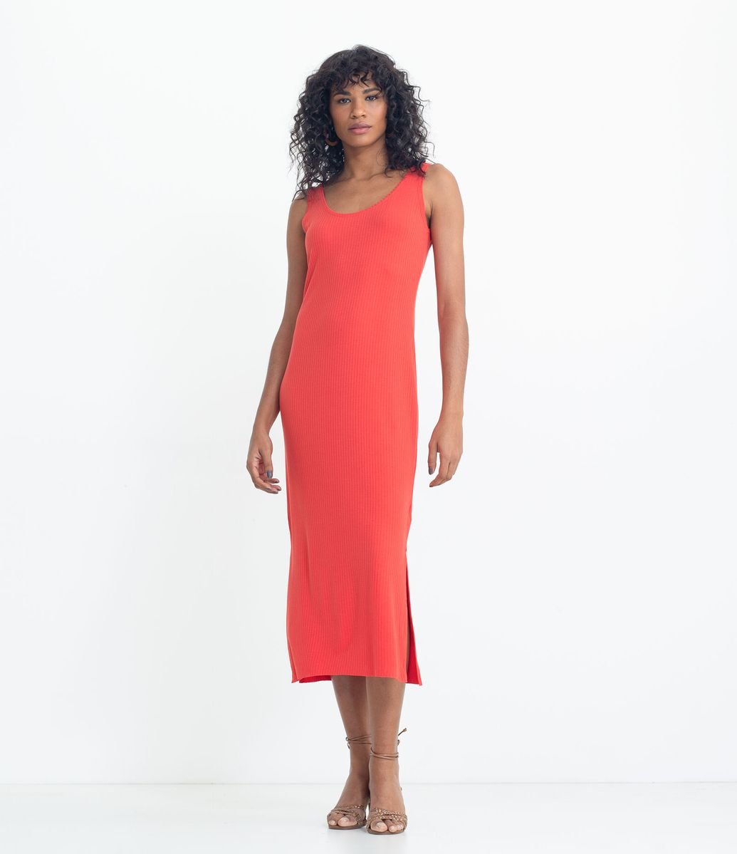 VESTIDO MIDI EM VISCOSE CANELADO SEM MANGAS VERMELHO