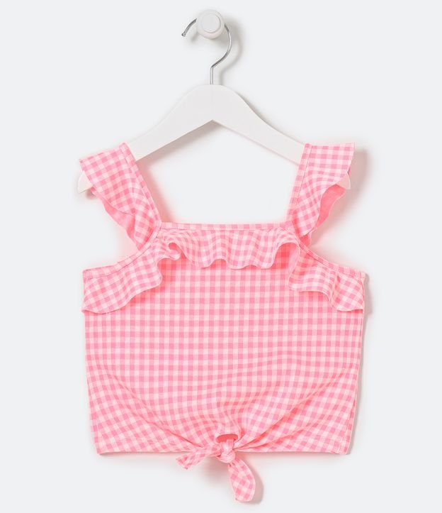 BLUSA INFANTIL ESTAMPA DE VICHY NEON COM BABADO - TAM 5 A 14 ANOS ROSA