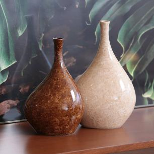 Vaso Decorativo para Mesa Dupla Cristal Bege e Marrom Petra - Camicado