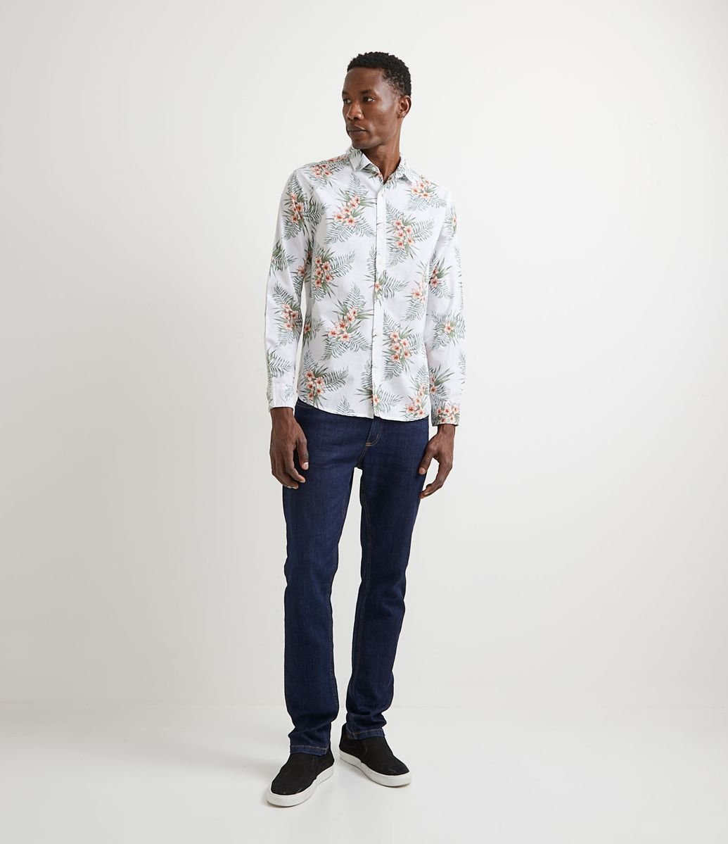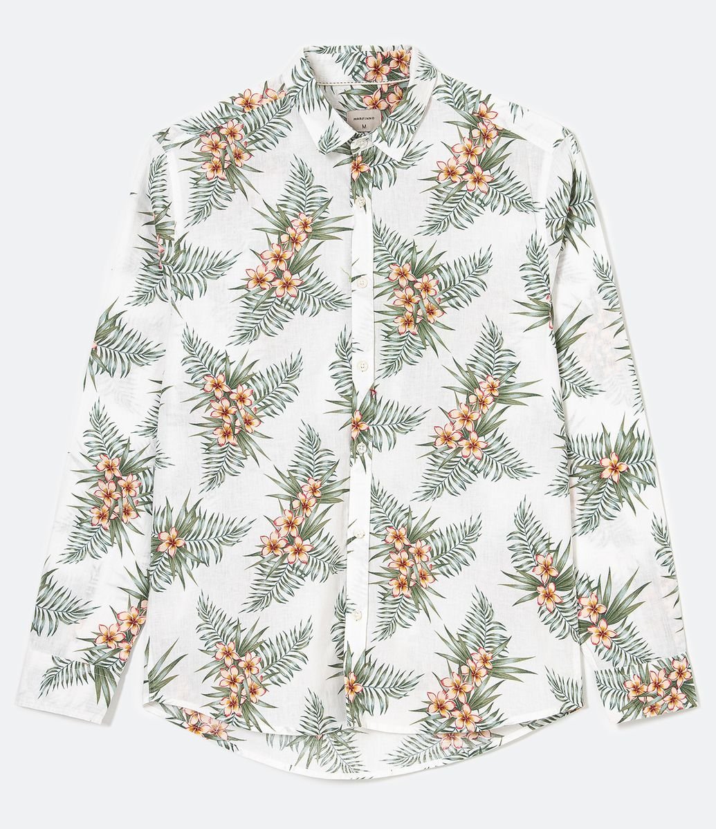CAMISA MANGA LONGA EM LINHO ESTAMPA FOLHAGENS E FLORES BRANCO
