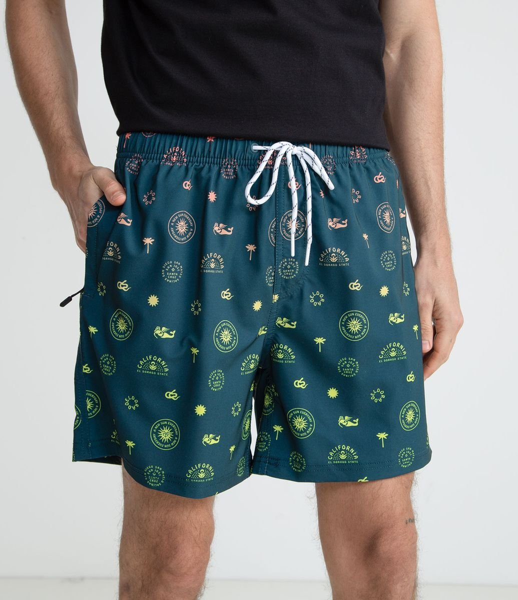 BERMUDA DE BANHO COM ESTAMPA PRAIANA AZUL