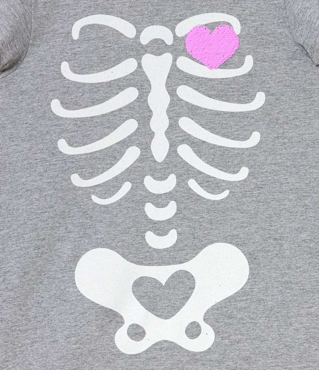 CAMISOLA INFANTIL ESTAMPA ESQUELETO BRILHA NO ESCURO - TAM 5 A 14 ANOS CINZA