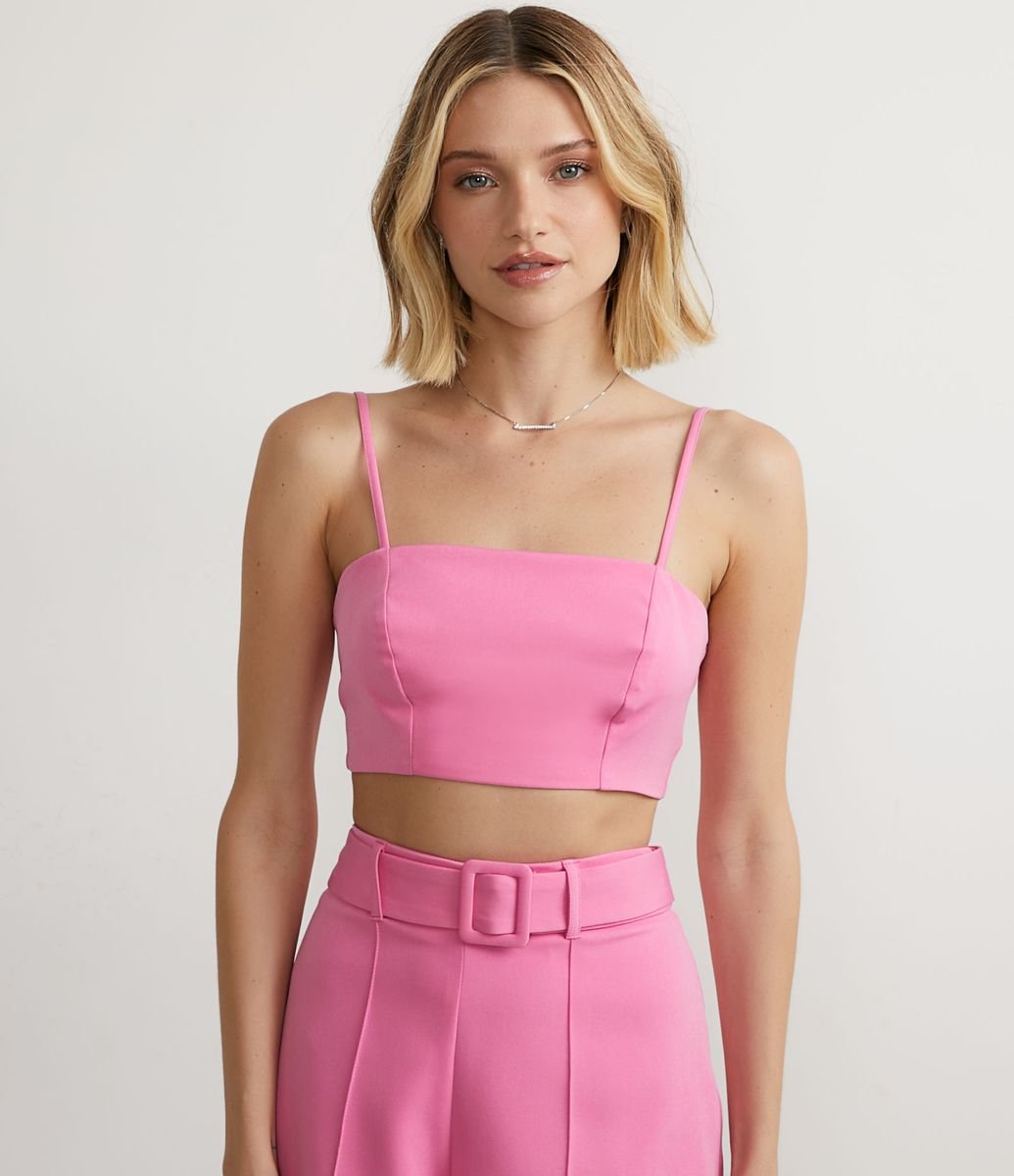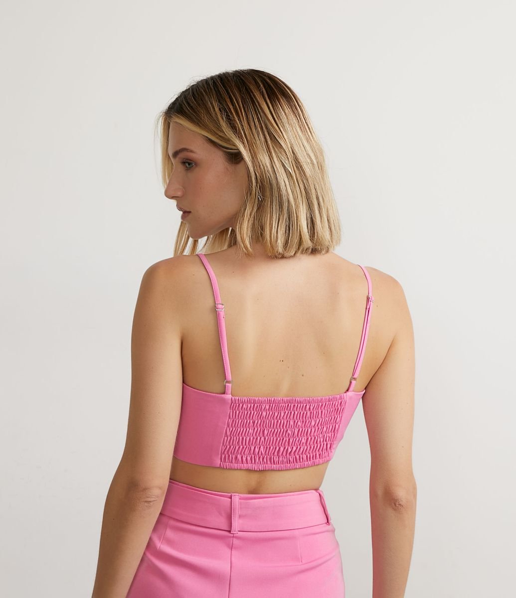 BLUSA REGATA CROPPED EM CREPE COM LASTEX NAS COSTAS ROSA