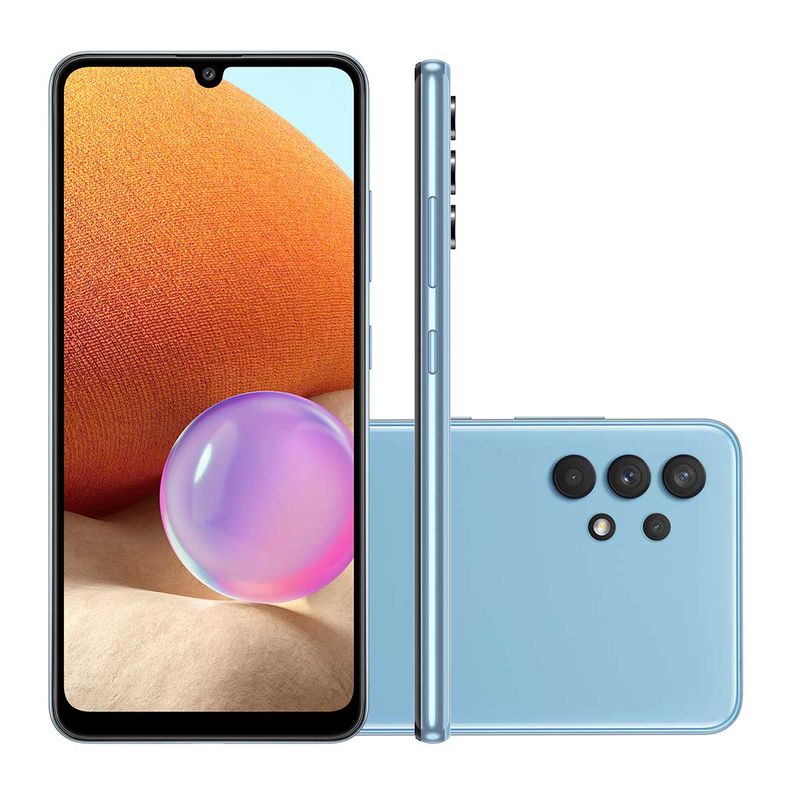 Smartphone Samsung A32 128GB Azul 4G Tela 6.4” Câmera Quádrupla 64MP Selfie 20MP Dual Chip Android 11.0