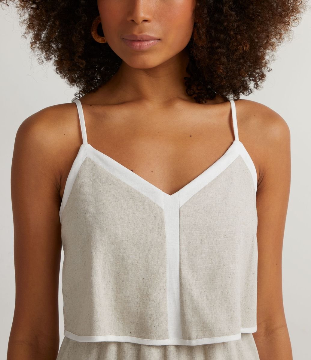 VESTIDO MIDI EM VISCOSE COM DETALHES CONTRASTANTES BEGE