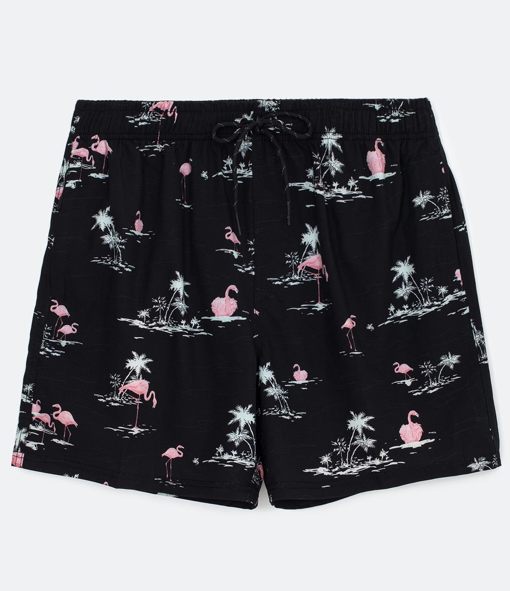 BERMUDA ESTAMPADA COM AMARRAÇÃO PRETO | Produtos Exclusivos do Loja.Online