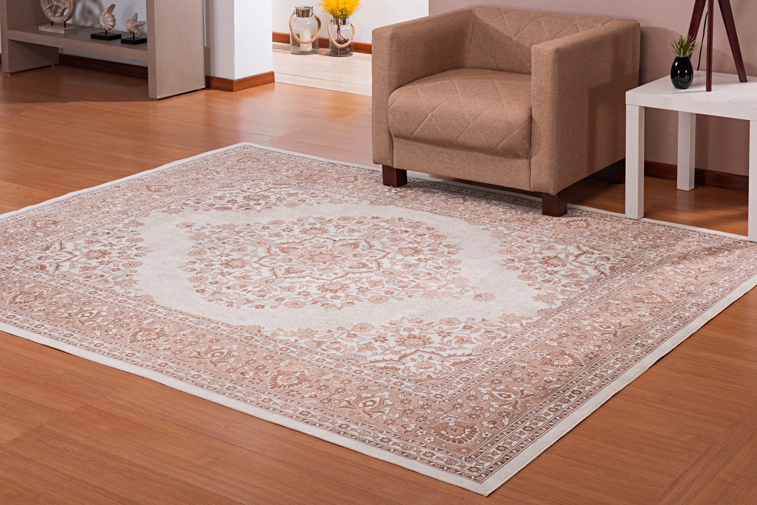 Tapete Belga em Viscose Stillo Medalhão 68x110cm Bege | Produtos Exclusivos do Loja.Online