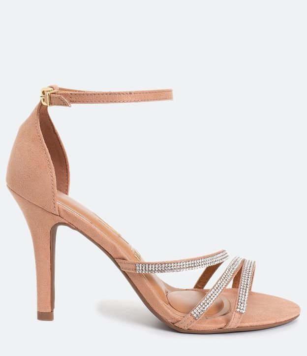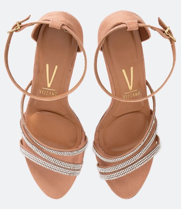 SANDALIA FEMININA SALTO FINO COM TRÊS TIRAS EM STRASS VIZZANO BEGE