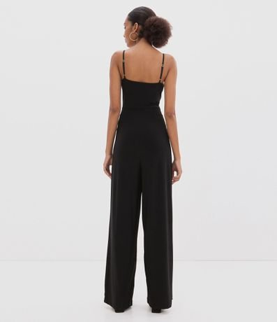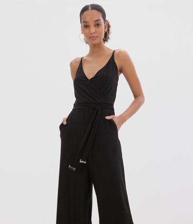 Macacão em Malha Sem Manga com Amarração na Cintura Preto - Renner