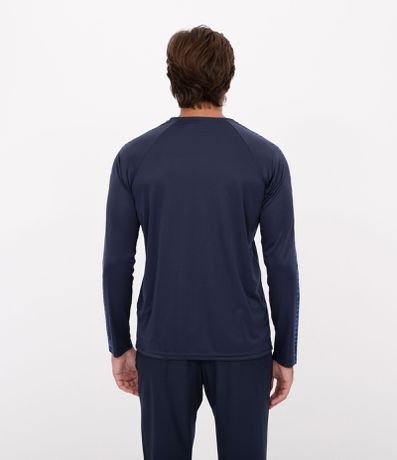 CAMISETA ESPORTIVA ESTAMPA NEON NAS MANGAS E PROTEÇÃO UV AZUL