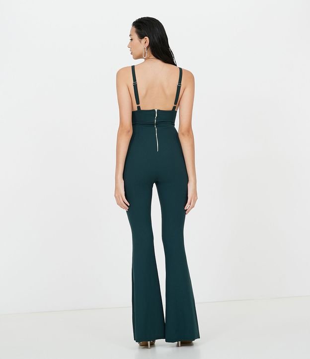 MACACÃO FLARE EM CREPE COM DETALHE EM TULE VERDE