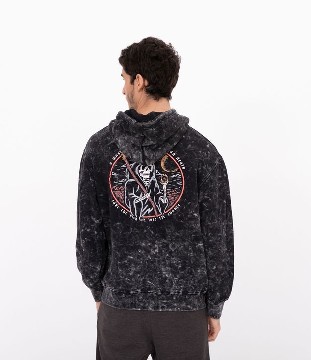 BLUSÃO EM MOLETOM MARMORIZADO PRETO