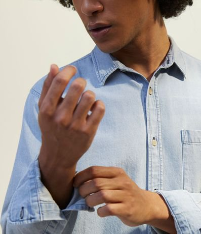Camisa Manga Longa em Jeans Lisa Azul - Renner